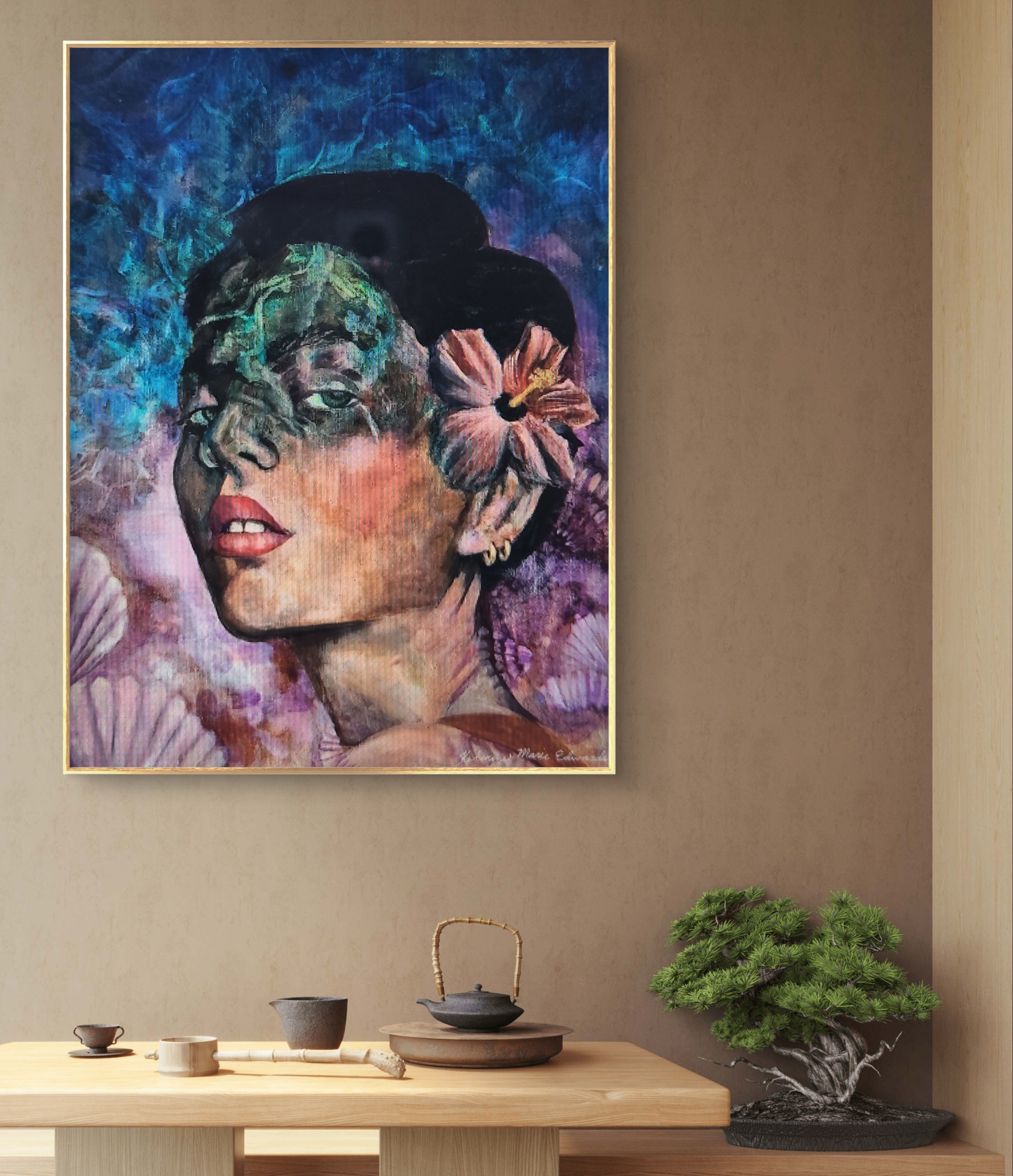My work often centers embodied women, elemental symbols, and nature’s layered wisdom — the seen and unseen, meeting on canvas.